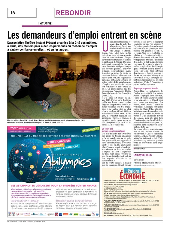 SUR LE THÉÂTRE ET LA RECHERCHE D’EMPLOI